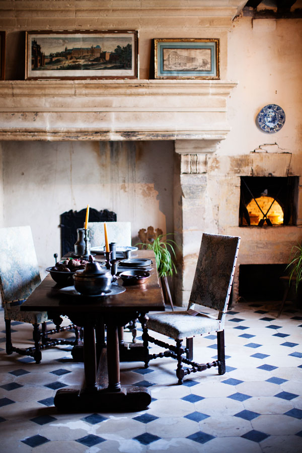 Château de VillesavinLa visite de l’intérieur du château démarre, et on entre dans le vestibule puis rapidement on se dirige vers la cuisine et son imposante cheminée-rôtissoire.