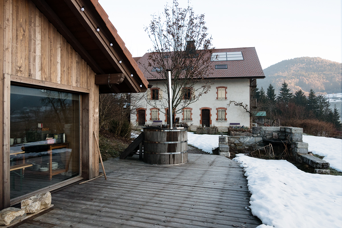 5 chambres spacieuses offrent une vue imprenable sur les montagnes environnantes. Et le petit bonus du lieu : le bain nordique accessible en soirée, pour profiter des bienfaits de la chaleur sur nos muscles endoloris par toutes nos activités neige : ski de fond, chiens de traîneau, fat bike, … On avait tout pour être heureux.