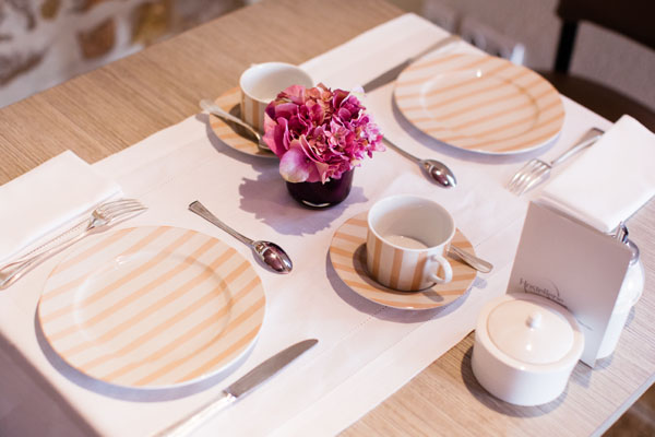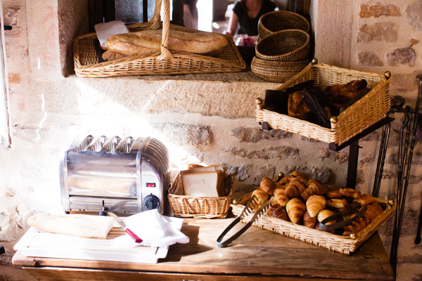 Le Bistrot au Bord de l’Eau sert de salle pour le petit-déjeuner et se trouvaient ici les anciennes cuisines de l’hôtel, datant de 1750. Le cadre est idyllique pour bien commencer la journée et l’option sans gluten était disponible :