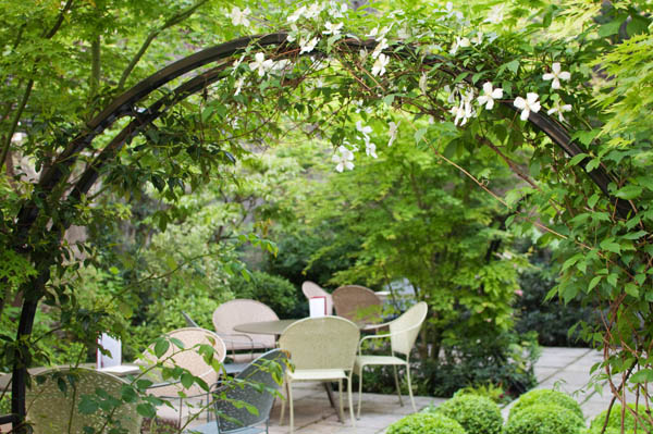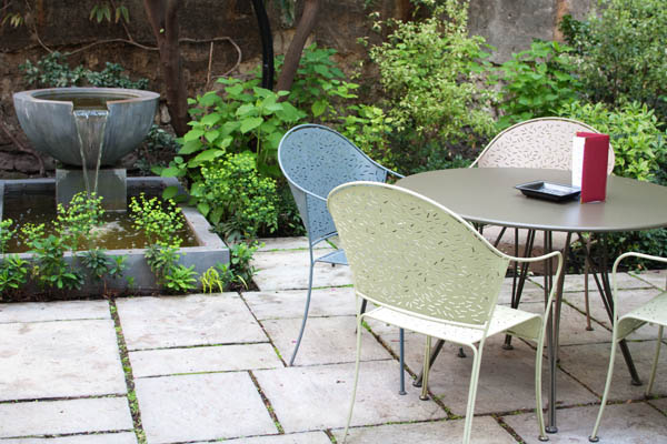 Situé à quelques pas de l’Arc de Triomphe, le côté « green » de l’Hôtel se révèle en découvrant le très mignon jardin zen. Ambiance campagne dans ce décor qui m’a trop plu… je me serais bien mise à lire un bon bouquin et siroter un jus de fruits frais au soleil. Oui, ce jour là, le soleil ne jouait pas à cache-cache !