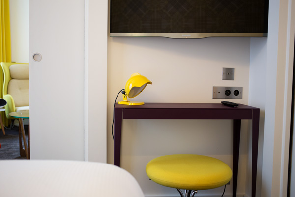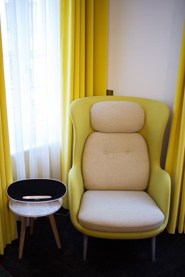 Un pas dans le salon et petit coup de cœur pour ce canapé Tessali en camaïeux de rose-fushia devant lequel est posée une table basse Fly par Space Copenhagen que je verrais bien chez moi. J’aime également le coin lecture / relaxation une fois confortablement installée dans le fauteuil Ro par Jaime Hayo. Une Station iPod est disponible pour écouter sa propre musique. Je me retrouve toujours un peu bête dans cette situation car je n’ai jamais de musique dans mon iPhone… oui suis pas patiente avec iTunes ^^