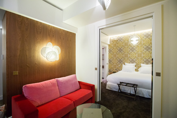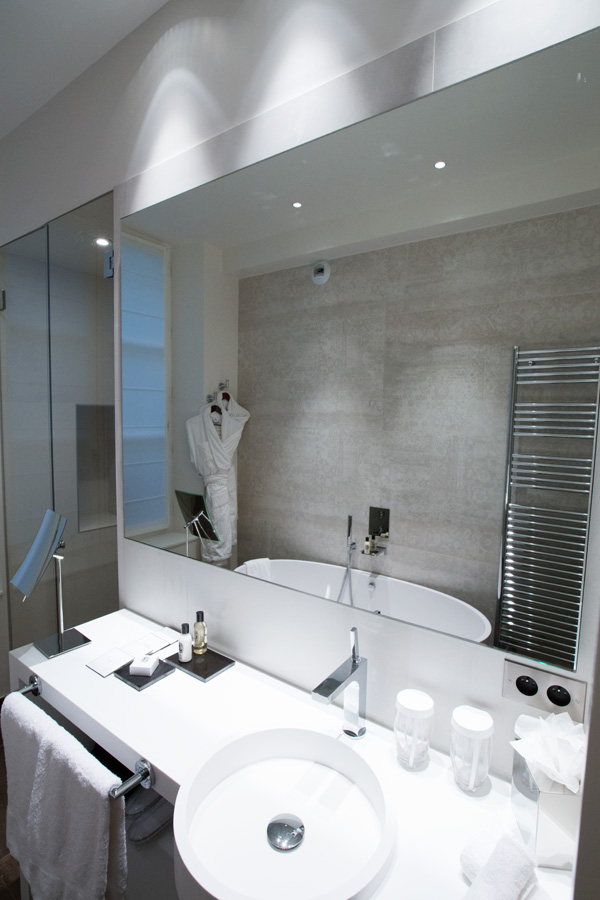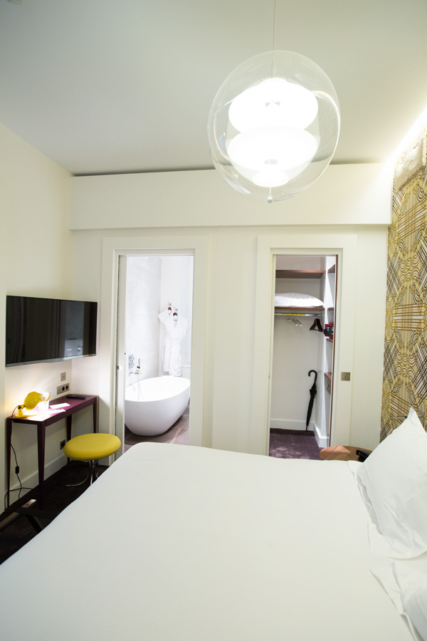 Sans plus attendre, j’ai pris le chemin de ma chambre – la Suite JAMES JEWEL au 2ème étage. J’aime le sas entre le couloir et la porte d’entrée de la chambre, qui donne tout son sens au côté ‘intimiste de l’hôtel et suggère que le voisin ne me dérangera pas ! Au fil des pièces que je parcours, pas forcément d’unité de ton, mais c’est ce qui me plaît, un hôtel avec son charme à lui et son inspiration art de vivre.