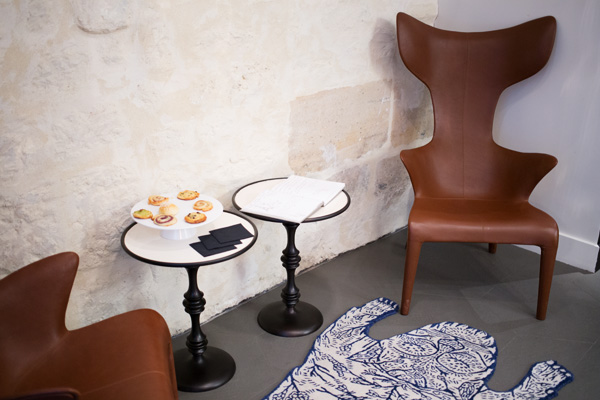 Une fois le pas de la porte passé, l’ambiance se décline avec de beaux fauteuils Lou Read par Philippe Starck pour Driade et un tapis Tiger par Dylan Martorell pour Moustache.