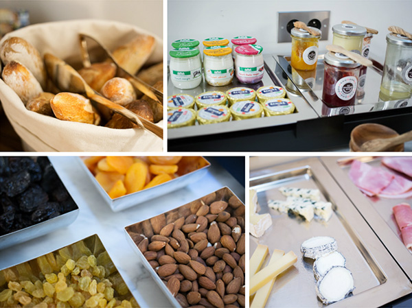Au petit-déjeuner, j’ai pu savourer des mini-cakes sans gluten – les mêmes que j’ai l’habitude de m’offrir – et du pain grillé très bon, le tout avec beurre salé et confiture de La Chambre aux Confitures (petite boutique très sympa, en remontant la Rue Vieille du temple).