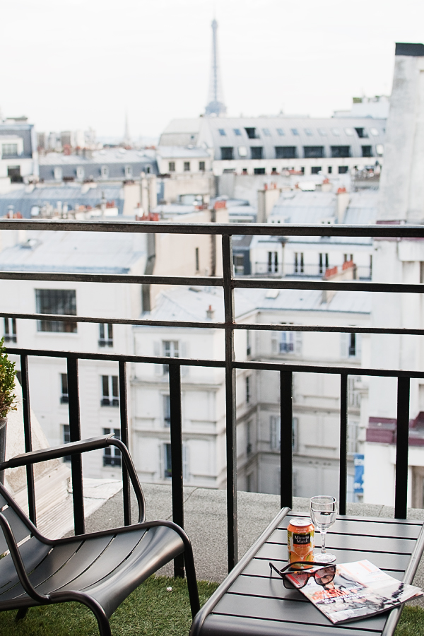 Joli bonus de la chambre, son accès à une belle terrasse avec effet verdure et un chouette salon où il fait bon lire un bon livre et siroter un petit jus de fruit… en gardant un oeil sur la Tour Eiffel.