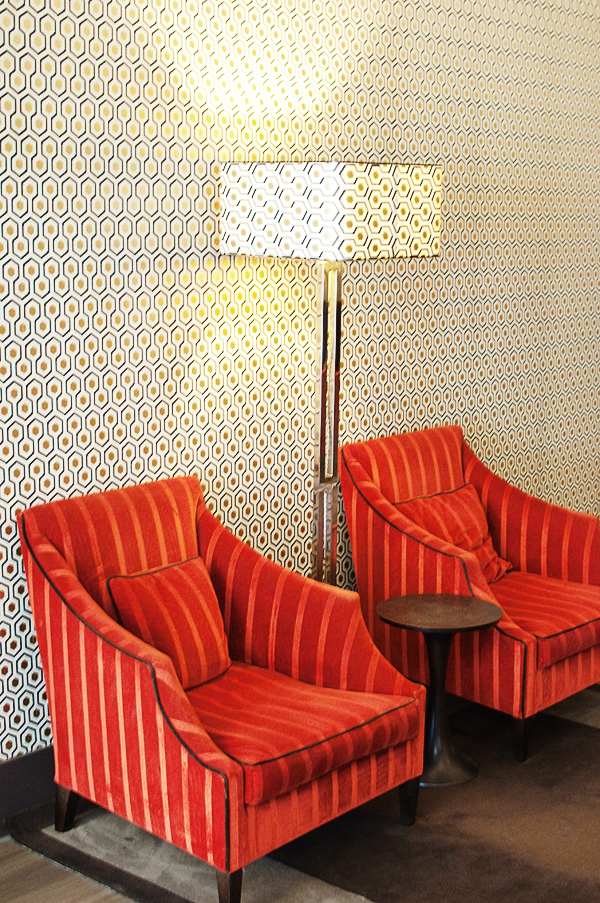 En arrivant dans l’entrée de l’hôtel, je suis séduite par le choix des couleurs et la disposition des salons où il peut-être sympa de se retrouver autour d’un verre et papoter même si on ne séjourne pas dans l’hôtel.