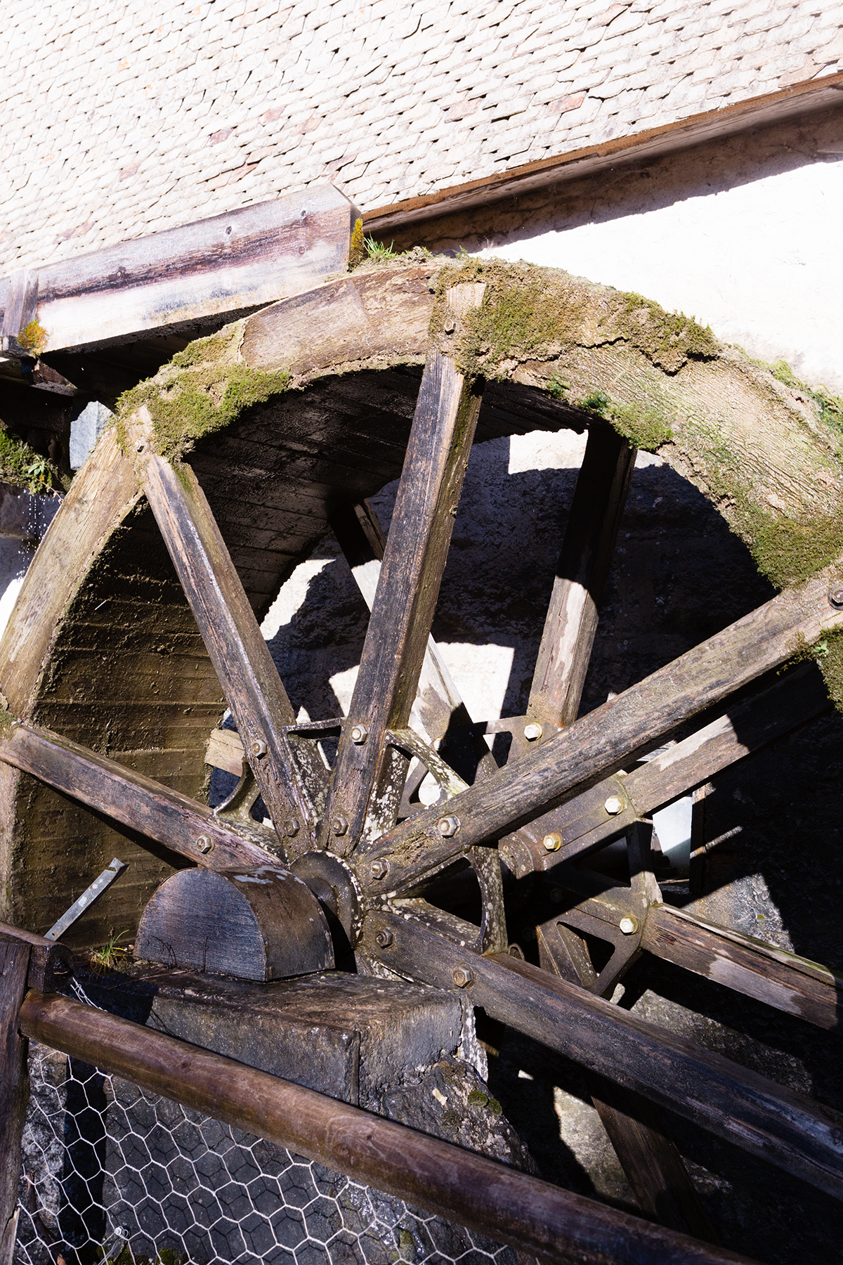 Ils ont entrepris la rénovation du bâtiment et de son moulin dans le respect de la tradition, afin que la grande roue ne cesse (jamais) de tourner.