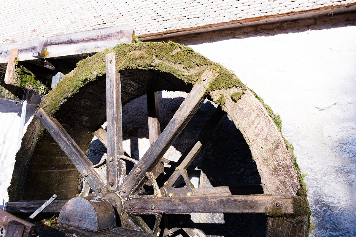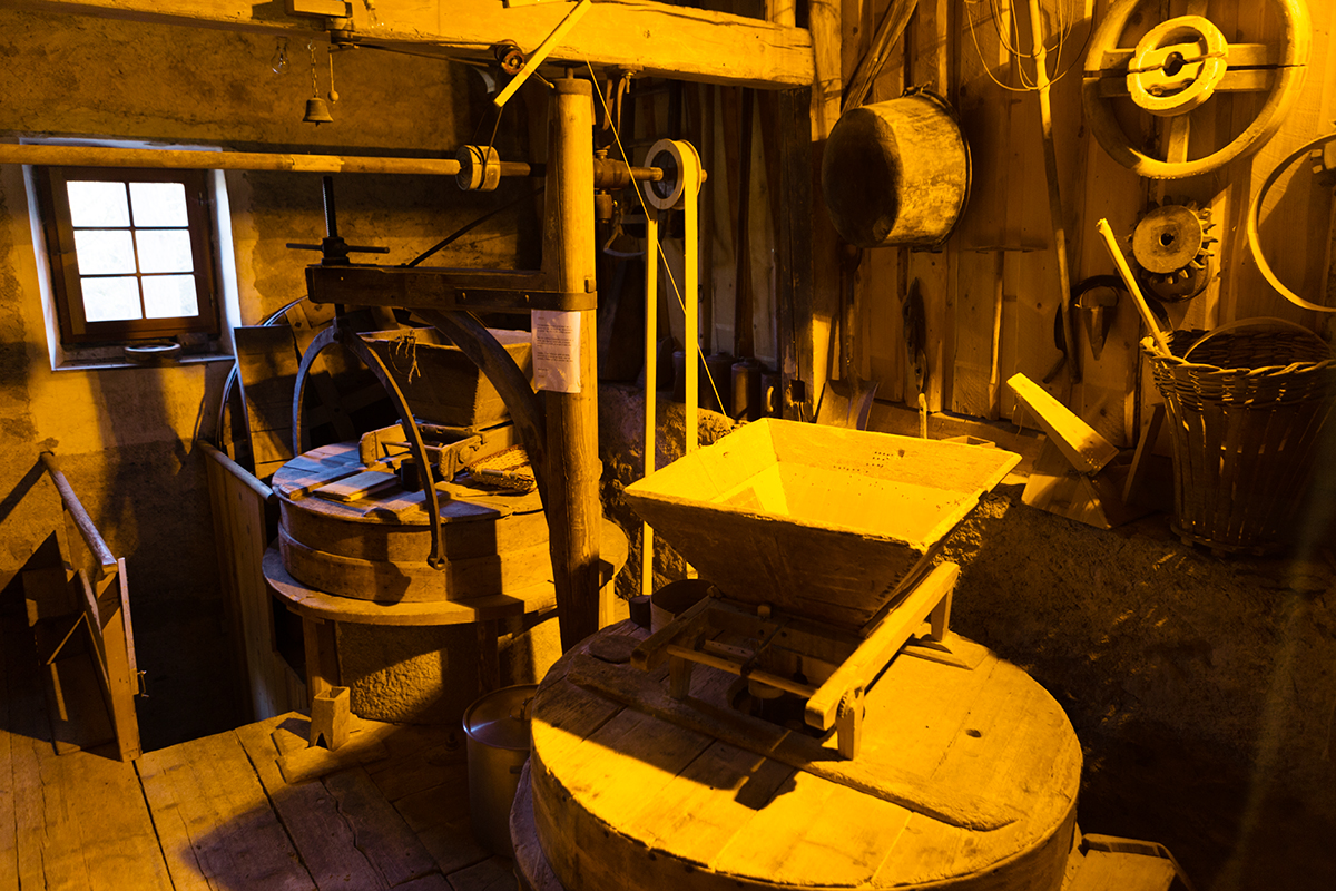 – L’histoire du lieu et la conservation des éléments visibles au public (moulin, grande roue, mécanismes, …)