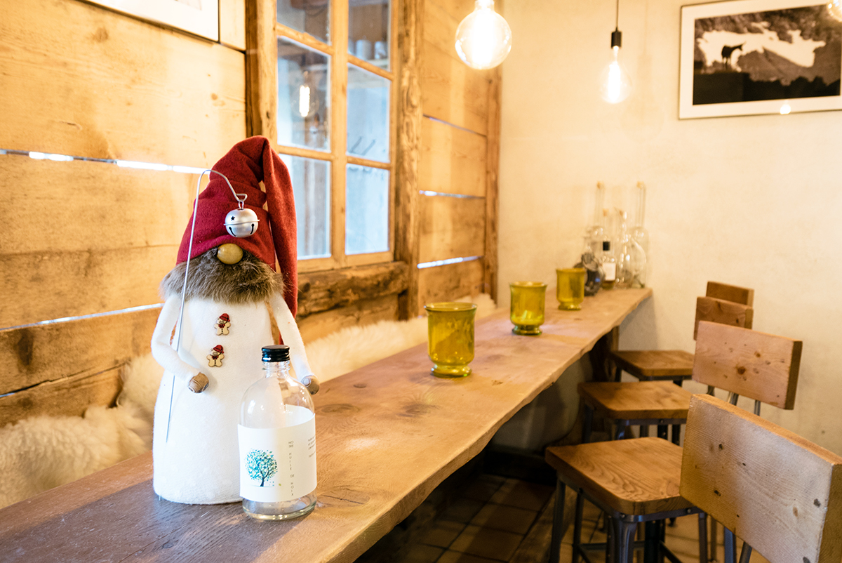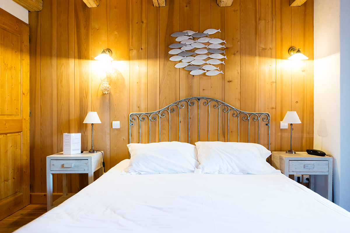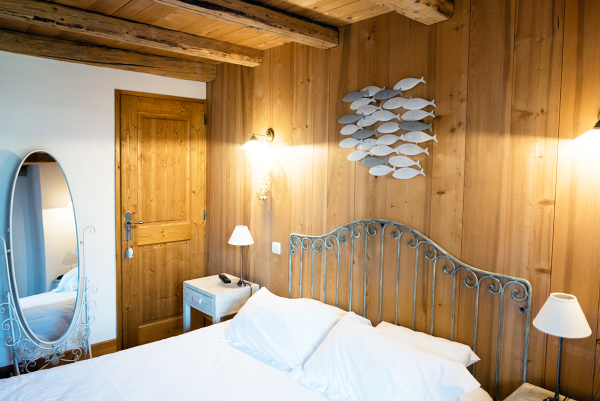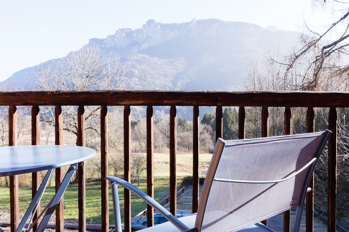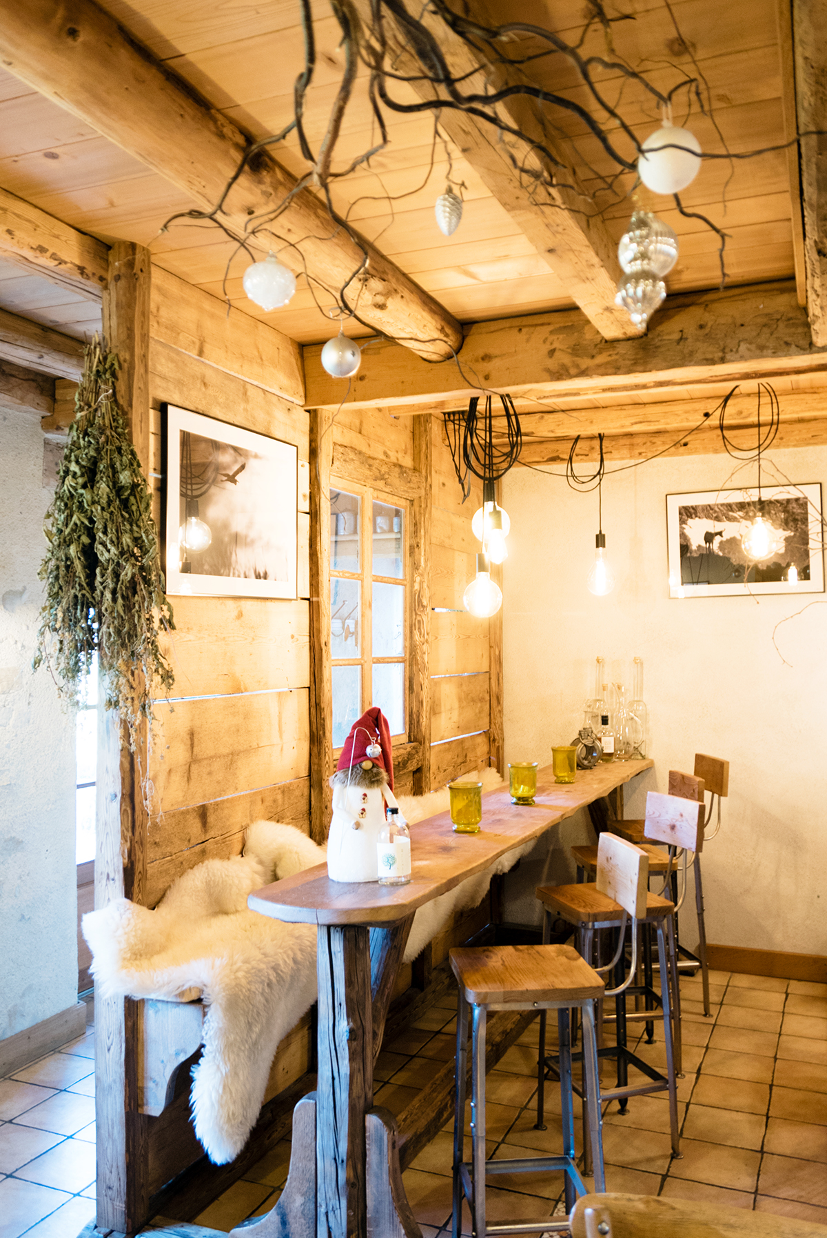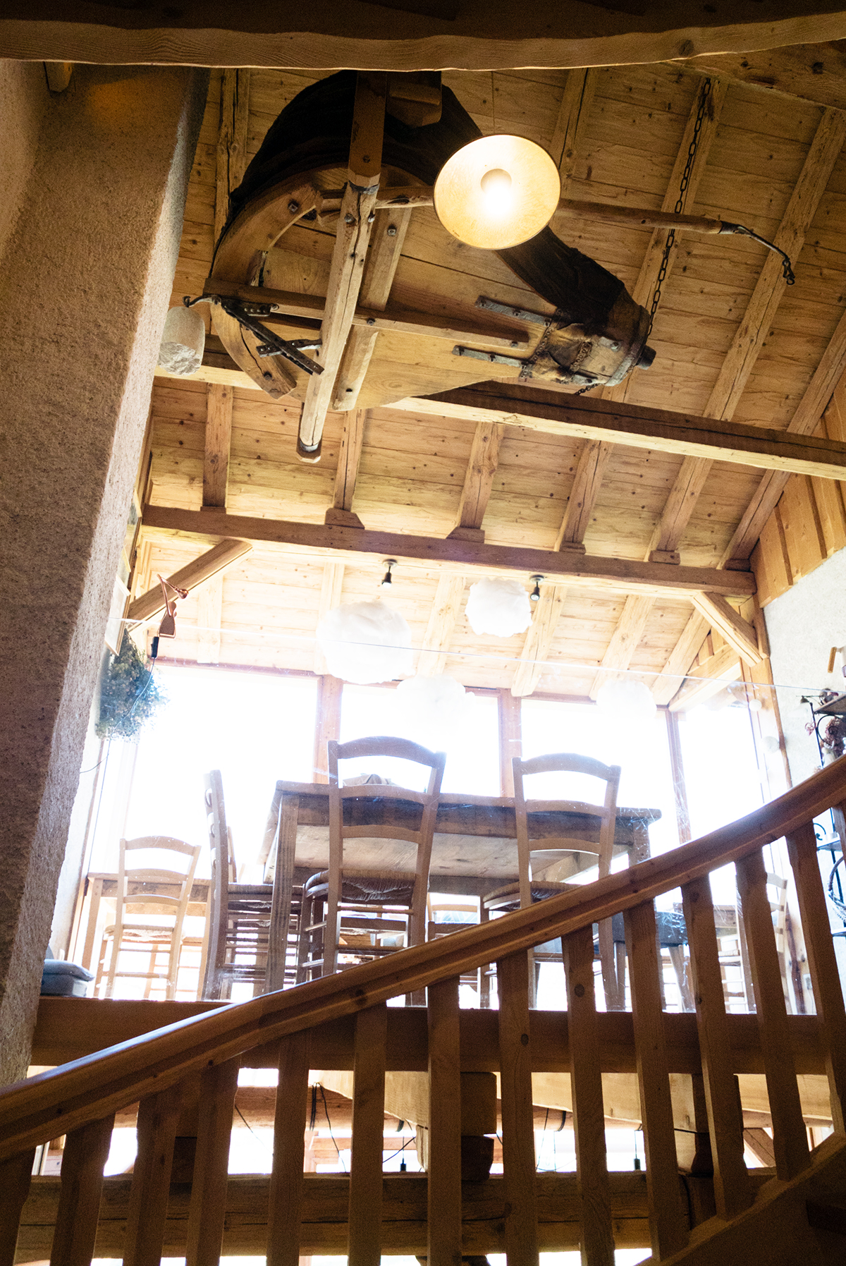 Côté hôtel, il n’y a que 5 chambres qui sont toutes décorées avec beaucoup de soin. On s’y sent très bien. Et nous avons eu la chance d’avoir une chambre avec un petit balcon qui donne sur le beau paysage montagneux et presque blanc. La neige s’étant faite rare au moment où nous y étions.