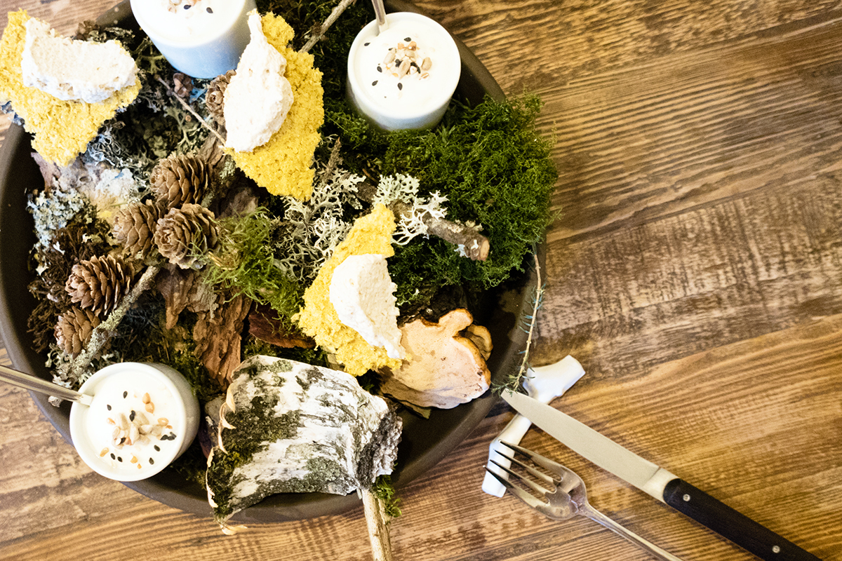 Entrée : Caviar de féra du lac, topinambour et petit lait