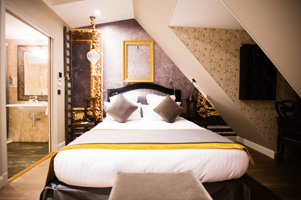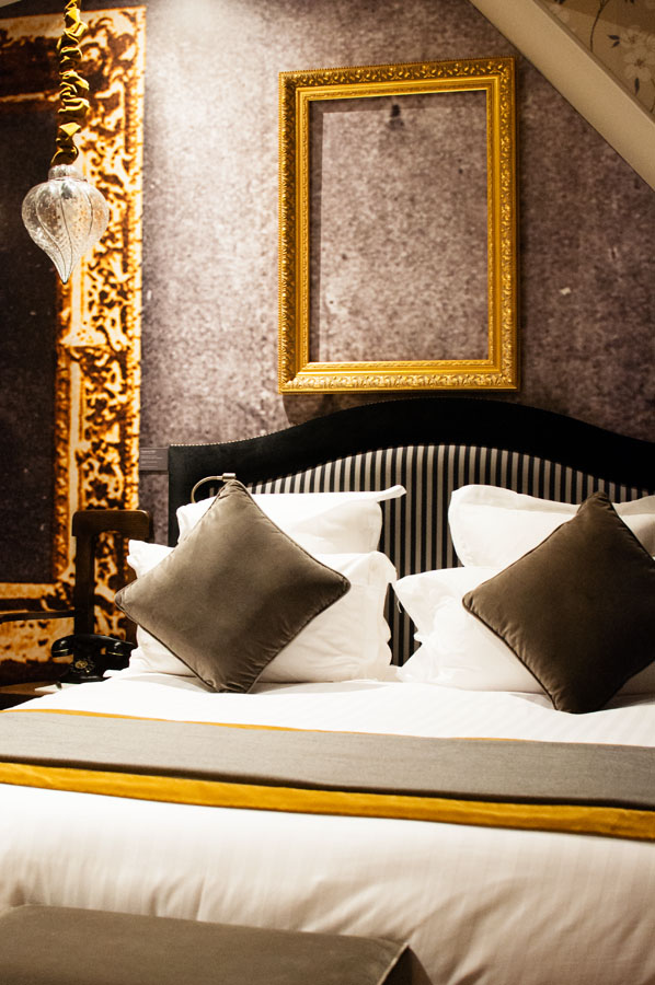 Puis direction la chambre qui m’a été attribuée pour la nuit : la chambre d’un voleur, celle de l’Adorateur de la Joconde. Cette chambre rend hommage au tableau dérobé qui séjourna entre ses murs, très précisément…