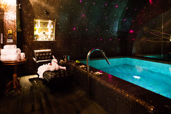 Je poursuis la visite avec l’accès à l’espace détente doté d’une superbe piscine construite sous les voûtes de l’hôtel. L’ambiance est relaxante à souhait et le vrai plus, c’est que l’accès est privatisé !