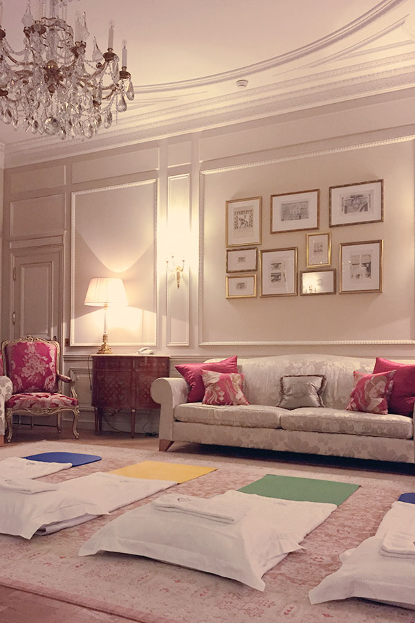 Chaque séance se déroulera dans un lieu différent de l’hîtel… Ce soir-là nous étions 5 participantes dans une superbe Suite – insolite et cosy pour une séance de bien-être :