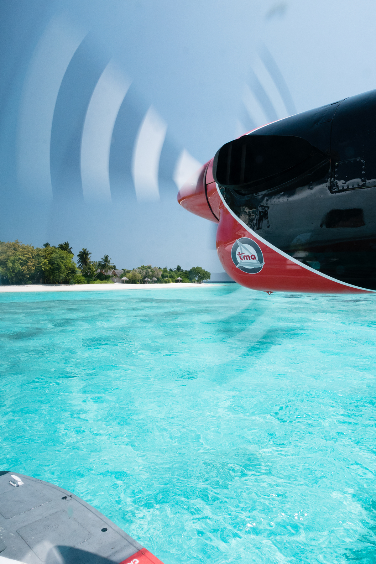 Une fois à Malé, nous avons patienté dans un lounge assez cosy de l’aérodrôme et quelqu’un est venu nous chercher pour embarquer. Nous avons pu observer le chassé-croisé des hydravions et l’excitation montait encore plus ! NB : j’avais déjà fait un baptême de l’air en hydravion lors de mon voyage dans les Landes (ici).