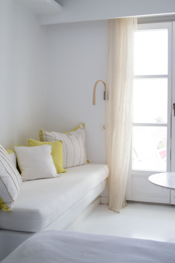 Lors de ce voyage, j’avais envie de me faire plaisir et j’ai donc opté pour de beaux hôtels. Un dans le centre pour profiter de la vie nocturne de Mykonos et un sur une plage pour abuser du farniente et bronzer. Mon choix s’est alors porté sur le Semeli Hôtel en brodure de la ville, mais très proche pour y accéder facilement à pieds.