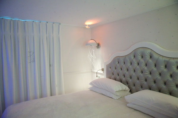 Par ici pour continuer la visite en passant par quelques-unes des chambres, dont ici la « Blanche Crystal » :