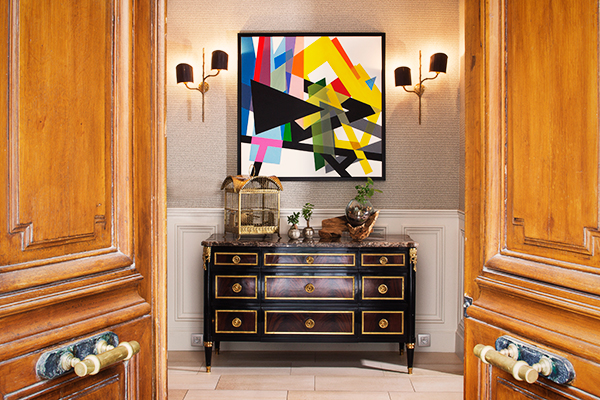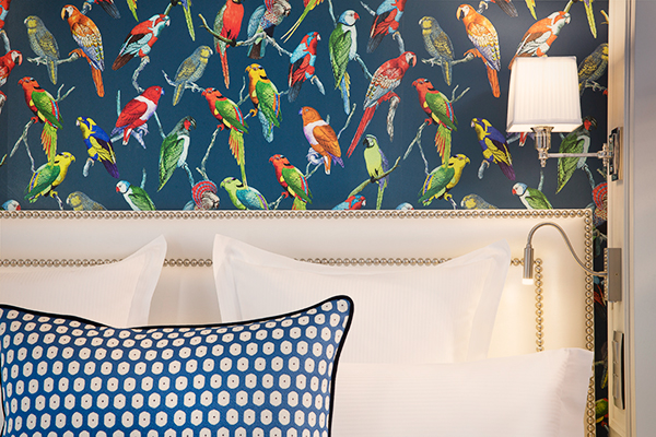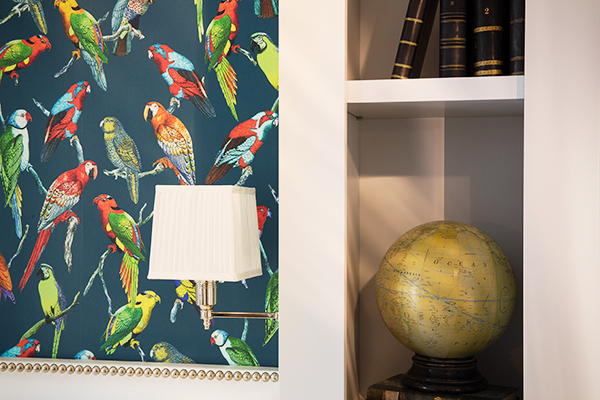 Viennent s’ajouter les papiers peints tropicaux de la Maison Deyrolle qui se révèlent être le fil conducteur