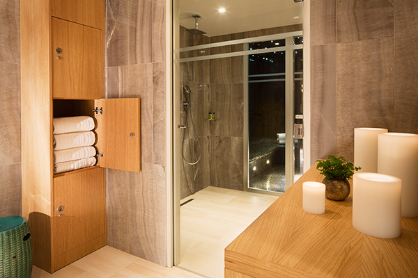 Petit détail qui fait la différence dans la salle de bain – le mur de la douche dispense une douce lumière étoilée grâce à de la fibre optique glissée derrière le mur. Ingénieux ! Les produits de bain sont signés L’Occitane.