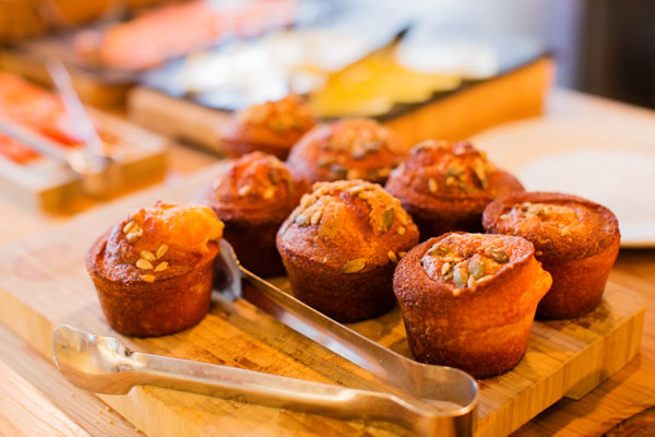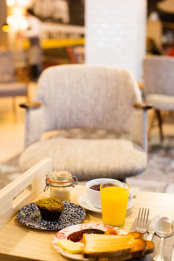 Au petit-déjeuner, c’est un chouette buffet qui m’attendait et j’ai pu m’installer confortablement dans un canapé pour le savourer – comme à la maison finalement :