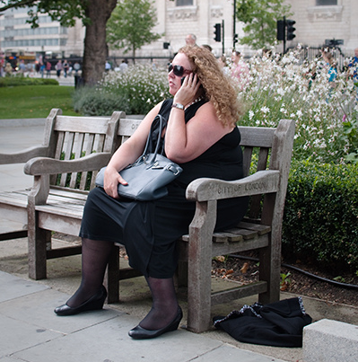 A chacun de mes voyages, en circulant dans les villes, j’aime faire des photos des personnes que je croise (discrètement bien sûr) et c’est avec chance que j’ai retrouvé cette photo d’une femme téléphonant sur un banc public à Londres, juste devant la cathédrale St Paul’s.