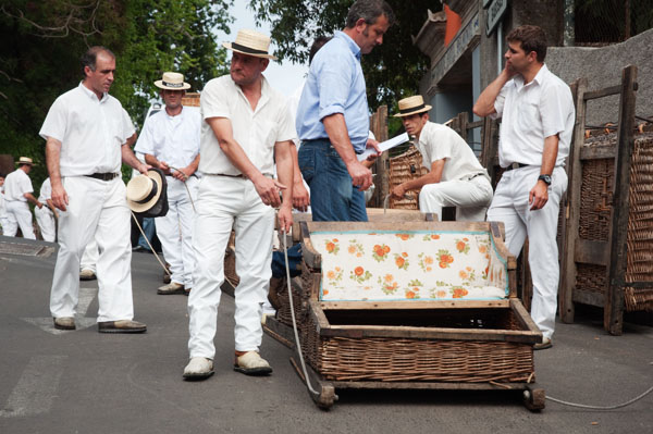 Les carros de cesto (ou toboggans) sont faits en osier et peuvent accueillir jusqu’à 3 personnes selon le modèle. Ils datent de 1850, époque où ils étaient utilisés par les commerçants locaux pour se déplacer plus rapidement dans cette ville construite sur le flan de l’île pratiquement. Deux carreiros se servent de leurs pieds pour contrôler la vitesse et les trajectoires… Amateurs de sensations fortes, réservez vos billets et faites la queue car vous ne serez pas seuls à vouloir tenter l’expérience. Perso, j’ai laissé ma place et préféré prendre en photo les plus courageux.