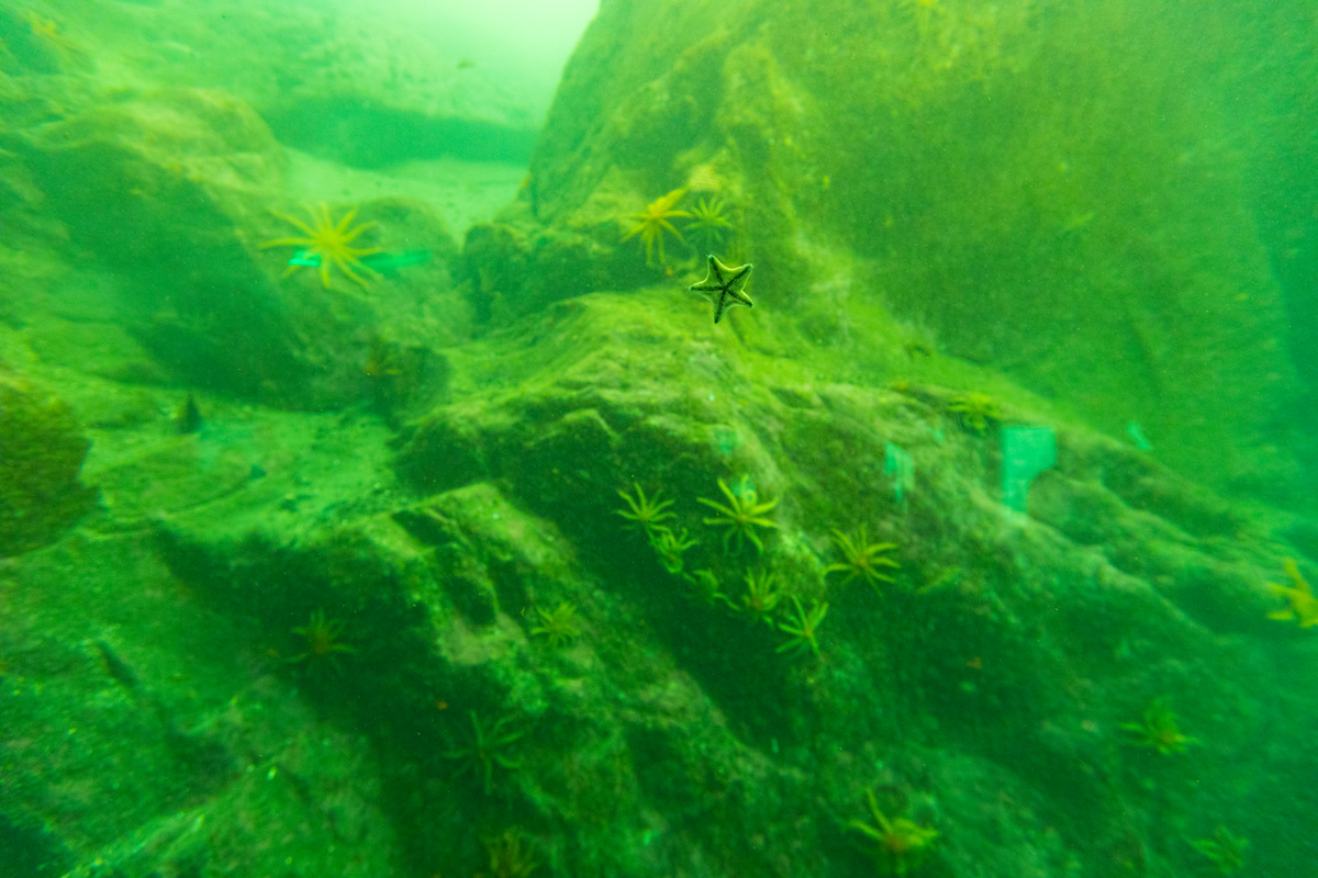 Nous atteingnons enfin le Discovery Centre qui est en réalité un musée sous-marin qui permet d’observer la vie aquatique à 10 mètres de profondeur. Pourquoi ce centre ? Car ils se sont rendus compte que la vie sous-marine était la même à 10 mètres qu’à 200 mètres de profondeur, ce qui donne un bel aperçu de ce qu’il se passe sous l’eau. Et cette visite complète à merveille ce que l’on voit durant la croisière, au dessus du niveau du fjord :