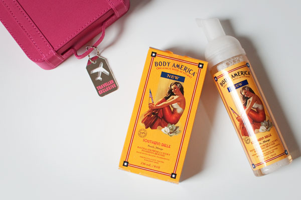 Je suis toujours à l’affût de découvertes et je passe des heures en boutique Bio ou sur les sites Internet… J’ai alors trouvé Southern Belle, la mousse de bain & douche à la douche odeur de pêche/mangue. Rien que le packaging m’a séduit et m’a donné envie de vacances ^^