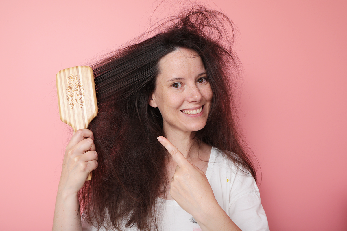 Le moment idéal, c’est lorsque les cheveux sont secs, donc surtout avant de les laver. Car le cheveu mouillé est un cheveu très fragile. Veillez aussi à enlever les cheveux de votre brosse à chaque brossage pour que la brosse garde son potentiel positif à chaque utilisation.
