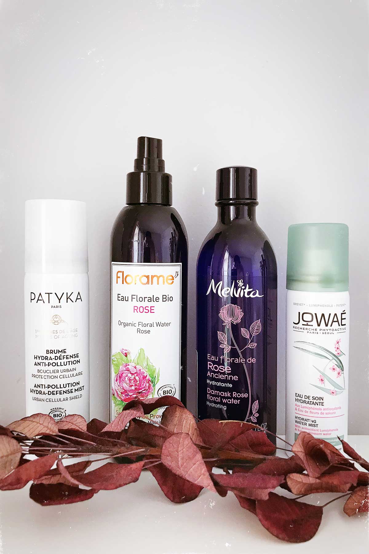 J’en ai plusieurs à la maison, mais je reviens souvent à la même : mon eau florale à la rose, et j’alterne les marques Florame et Melvita. Cela dit, les brumes Patyka et Jowaé sont super aussi.