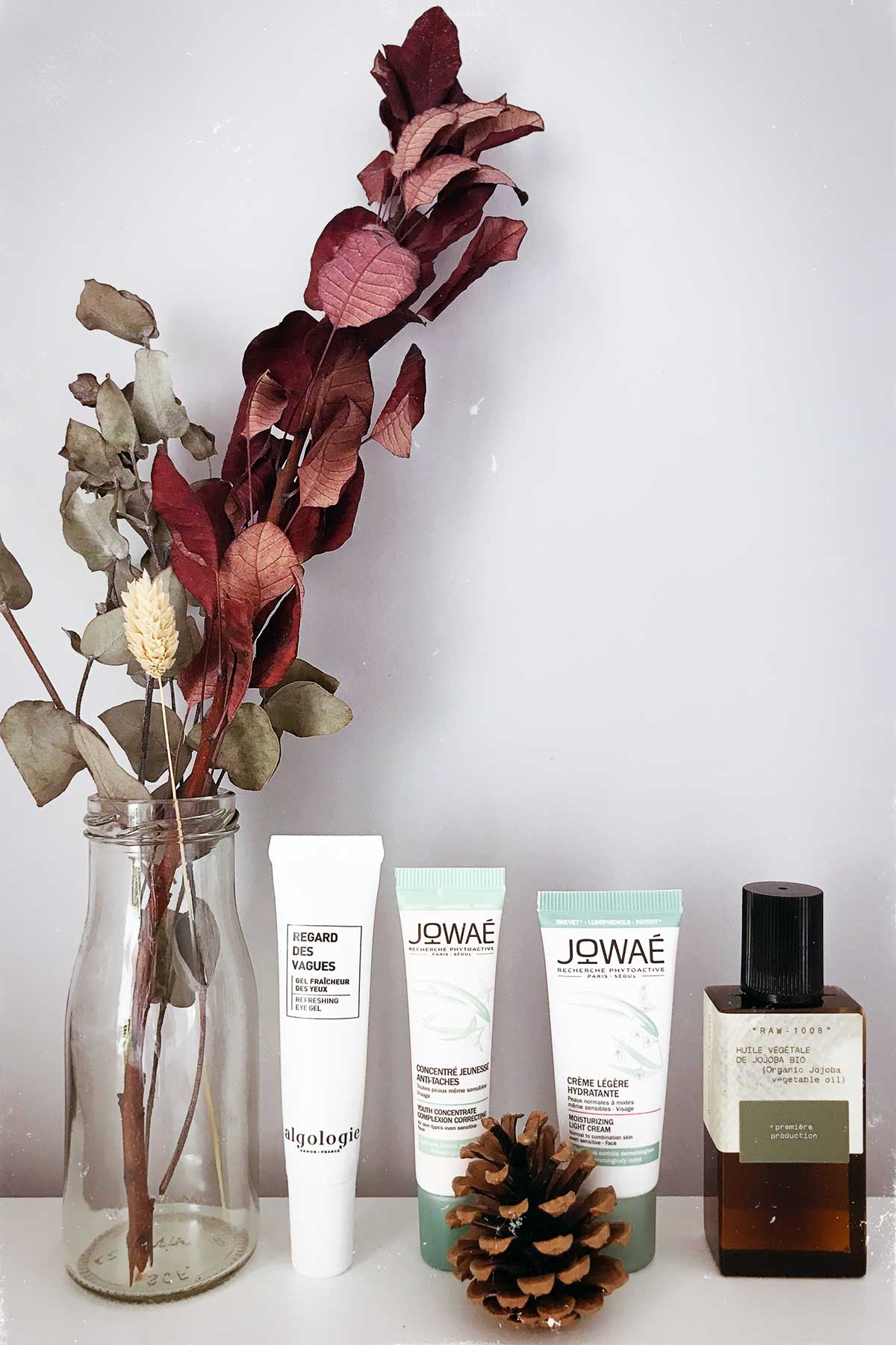 Voici les étapes de ma routine beauté avec les produits du moment – parfois sous forme de miniatures, car j’en ai fini de précédents et je fais avec mon stock actuel…